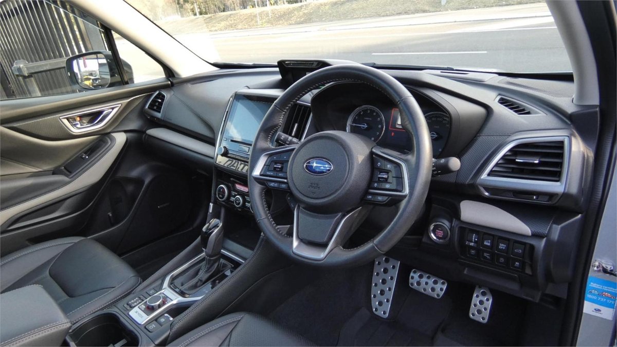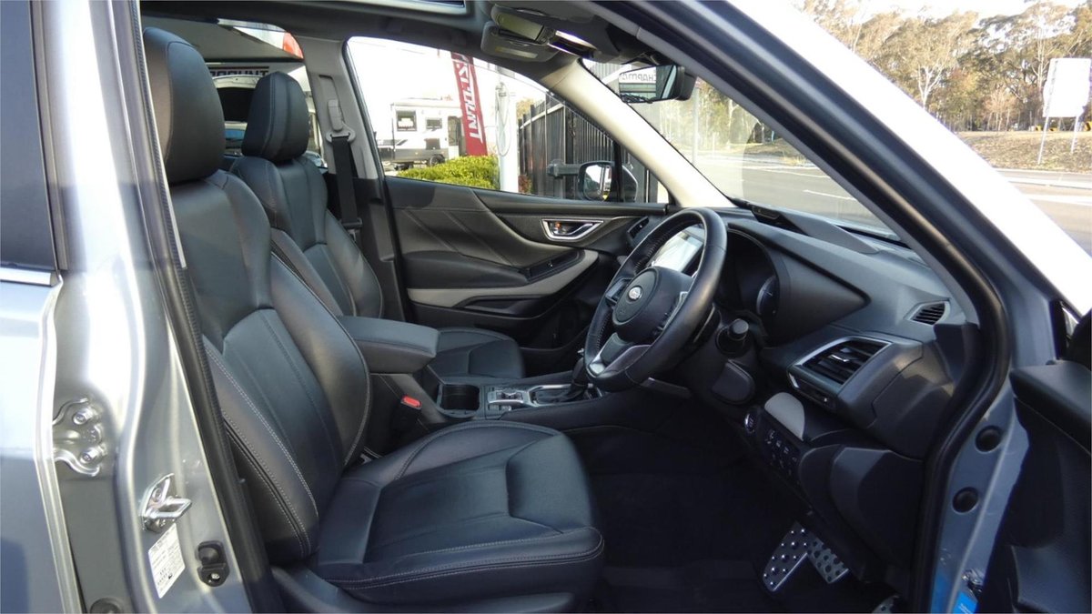 Inside, you'll find a spacious and luxurious grey interior with premium leather seats, a sunroof, and advanced technology like Apple CarPlay and Android Auto integration. The Forester also boasts a premium sound system, making every drive a concert on wheels.